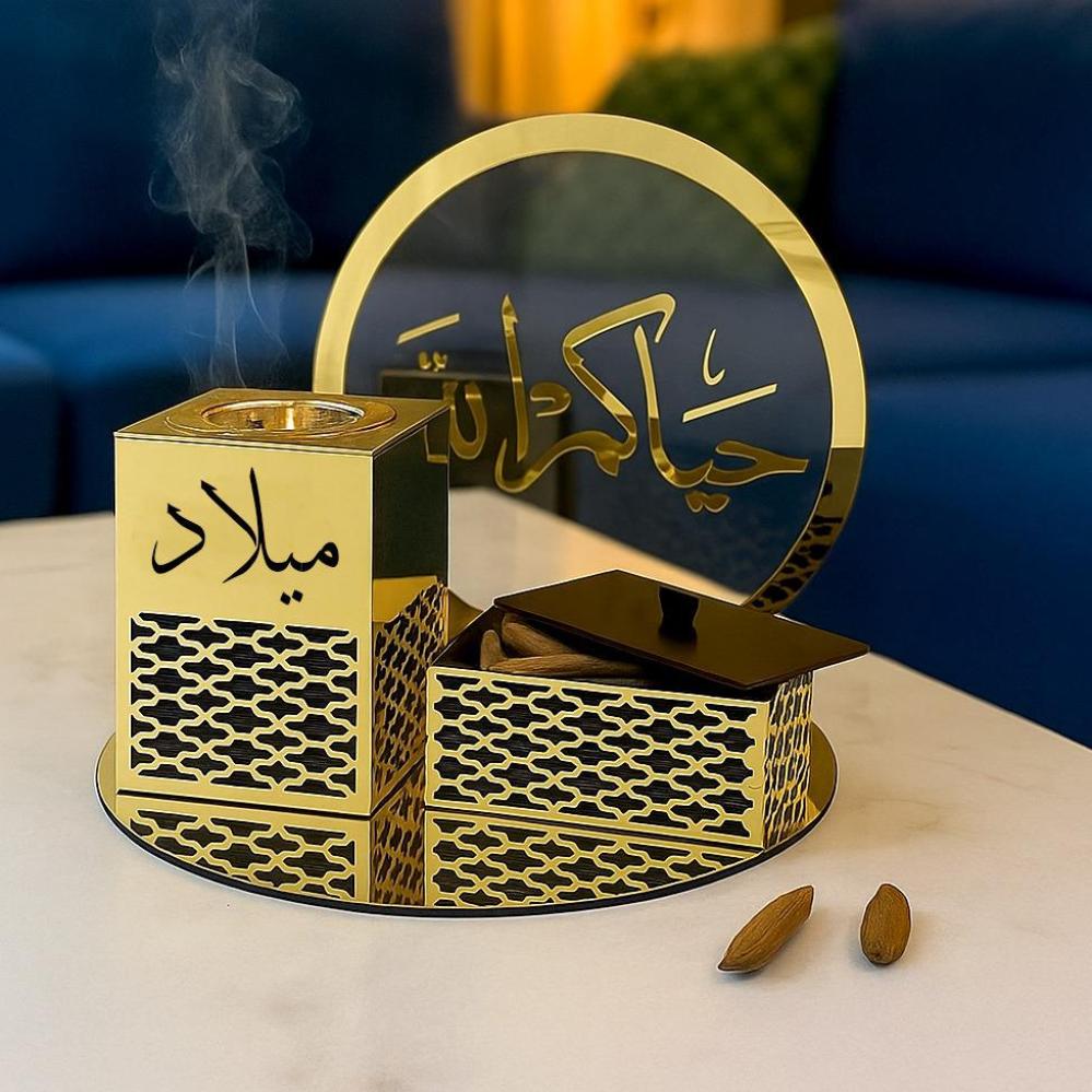 1- مبخرة أكريلك بتلبيسة مزخرفة واسم حسب الطلب