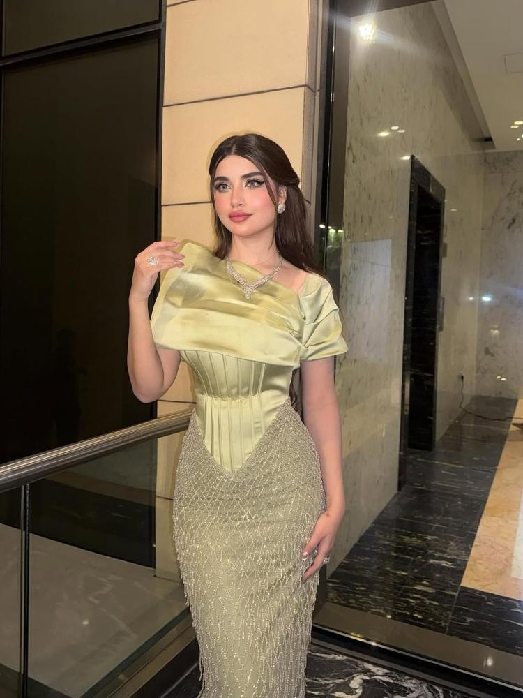 فستان سهره بلون تفاحي أنيق ولمسة راقية